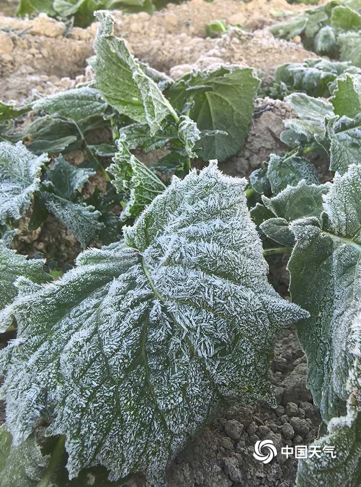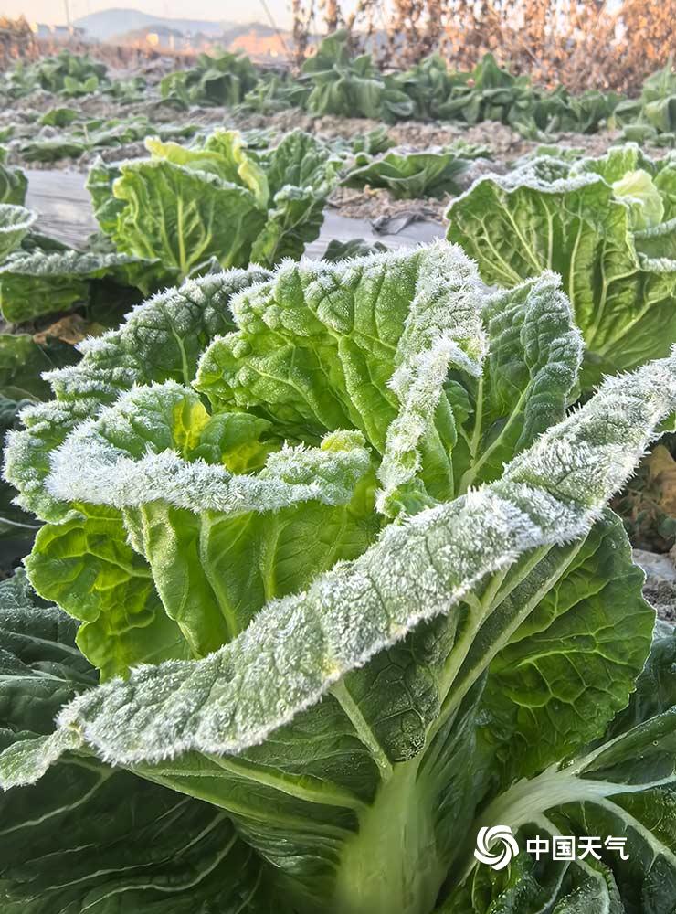 12月15日,受冷空气影响,闽侯县大湖乡岭头村一夜覆霜,蔬菜裹上一层霜雪绒衣,枯草也缀满晶亮的霜花,这冬日限定的晶莹,是大地写给自然的清冷小诗。(文/丁小芳 图/朱必孔)